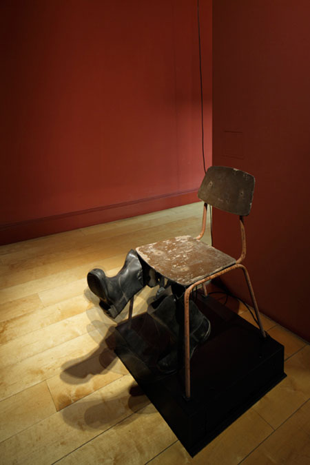 Kinētiskais objekts "Kāju šūpotājs" ir parasts krēsls no papīrfabrikas. Tas vairs nav vajadzīgs un tagad šūpo kājas...