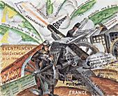 Džakomo Balla. Bruņukuģis + atraitne + vējš (Atraitnes plīvurs). 1916